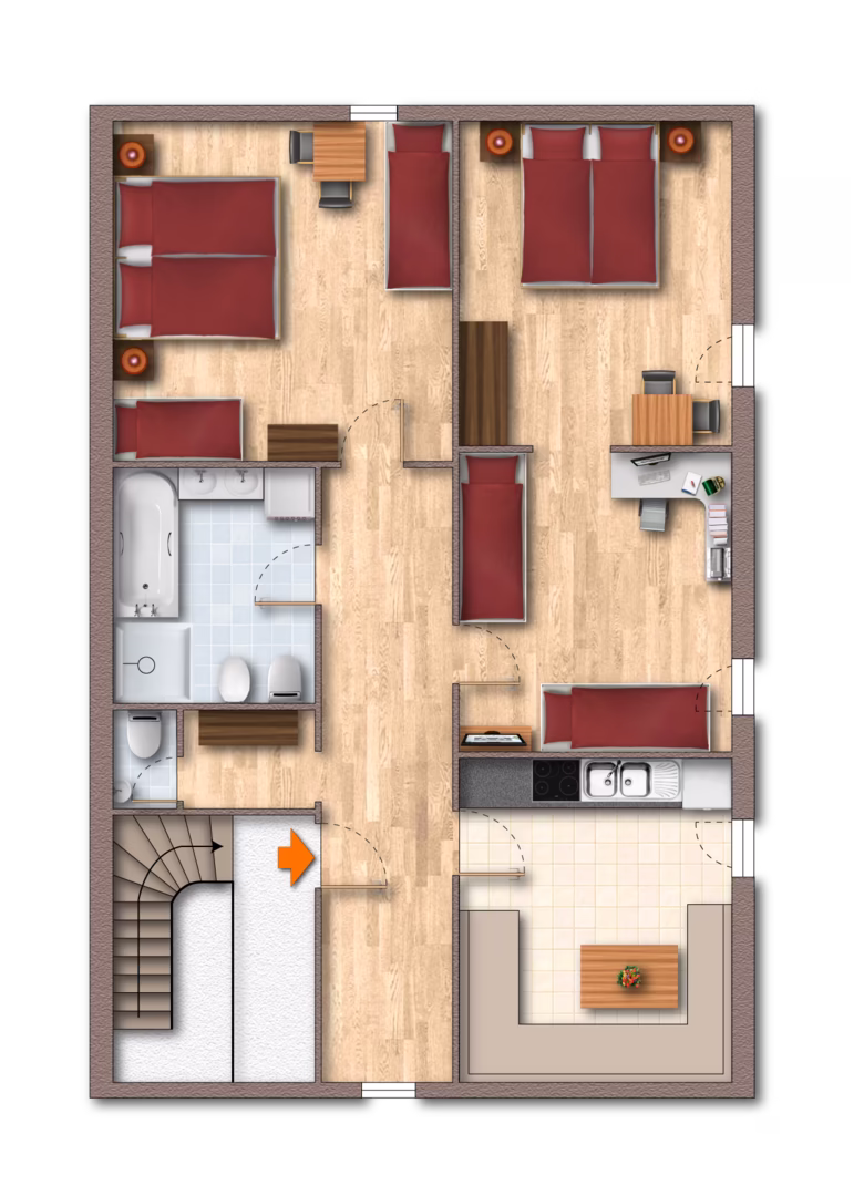 Das Apart Alpenblick im zweiten Stock kombiniert modernen Wohnkomfort mit echtem Bergpanorama – ideal für Familien und Freundesgruppen.